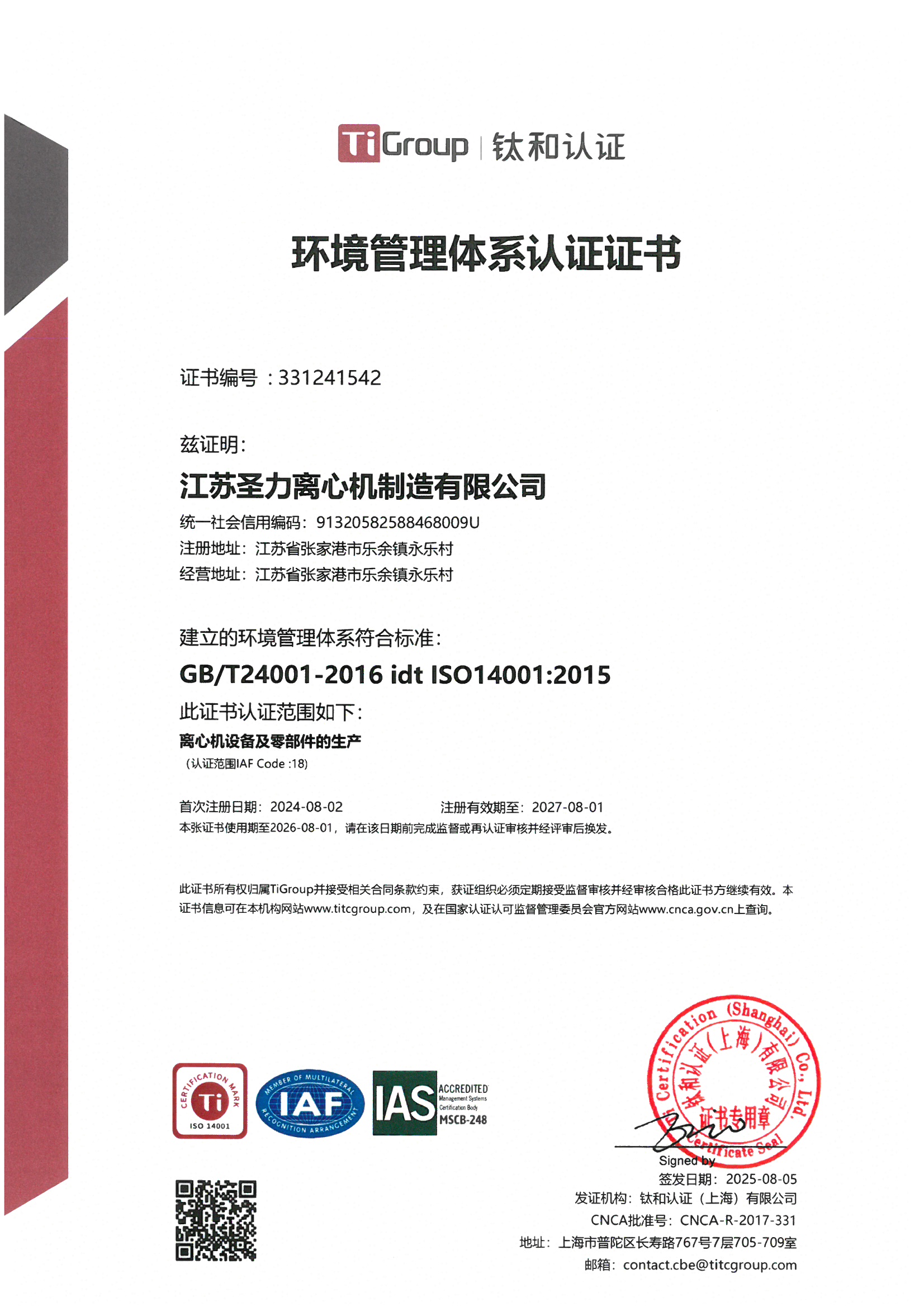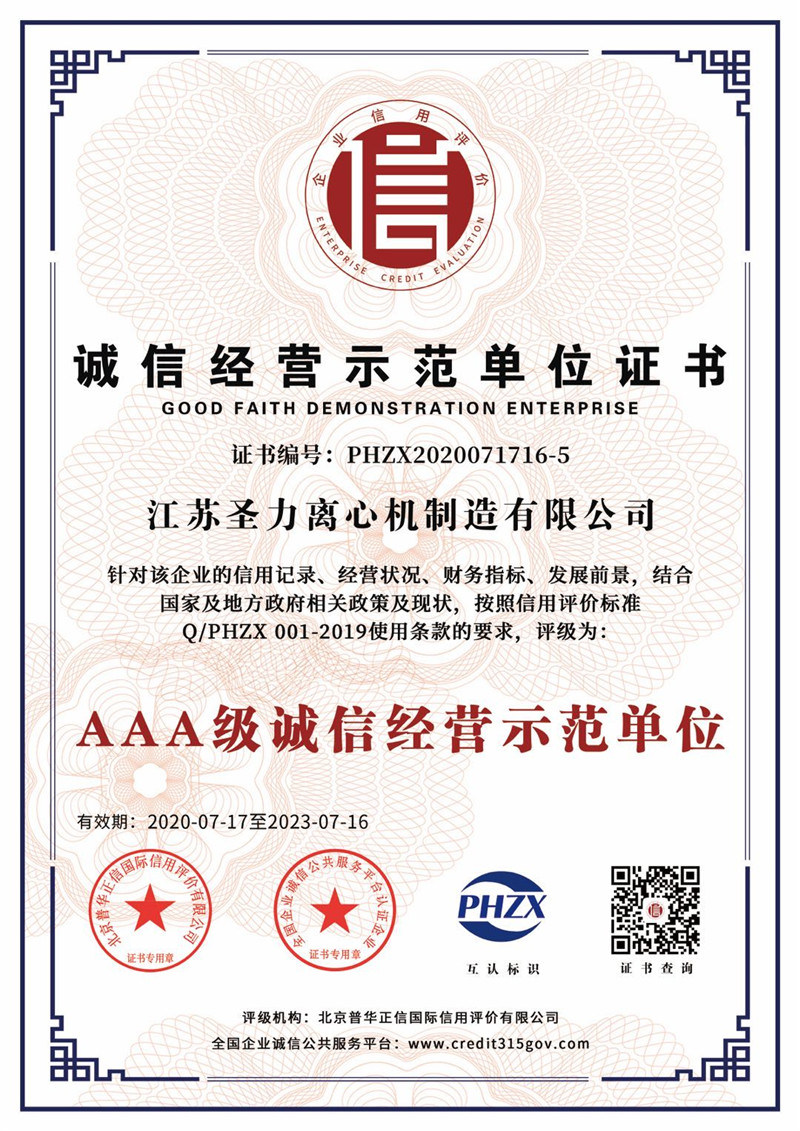 江蘇圣力離心機制造有限公司是國內分離機械行業(yè)中主要的離心機生產(chǎn)企業(yè),對離心機的研究、設計、制造有多年的歷史,擁有齊全的設備、完善的檢測手段。公司已通過IS09000國際質量體系認證、ISO14001環(huán)境管理體系認證、ISO45001:2018職業(yè)健康安全管理體系認證和CE認證,是江蘇省高新技術企業(yè),曾榮獲國家和地方多項榮譽稱號。